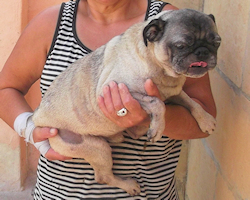 Salvu ist lustig und fröhlich, hat mit den großen Hunden seiner Familie schon Freundschaften geschlossen - mit den Menschen sowieso - und schläft am liebsten dicht gedrängt an einen Menschen oder Artgenossen.