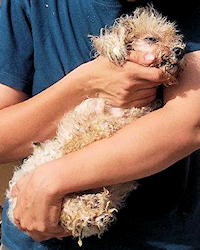 total verfilzten Fell an einigen Stellen die Haut bereits entzündet
