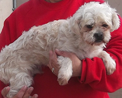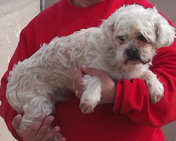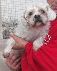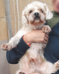 Der kleine Snowy ist eine lustige Mischung aus - vermutlich - einem Shih-Tzu und einem weiteren, noch näher zu bestimmenden Hundchen, klein und freundlich.