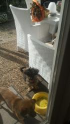 Mit ihren Artgenossen kommt sie gut aus - hier wartet ein wahrlich familientauglicher, fröhlicher kleiner Zwerg auf sein neues Körbchen auf Lebenszeit bei lieben Menschen..
