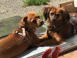 Alle beide Hundemädchen sind jung, freundlich, verträglich und auch handlich. Mama Mila ist 2,5 Jahre jung, Tochter Marla 3/4 Jahr. Mit einer Schulterhöhe um die 30 cm und einem Gewicht zwischen 6-10 Kilo sind sie eher klein und sehr angenehm zu handeln.