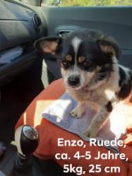 Auch dieses kleine Schätzchen war eines Tages nicht mehr gewollt und wurde herzlos irgendwo in der Pampa ausgesetzt. Da Enzo nicht wußte wohin und auch keinen Weg nach Hause zurück fand, setzte er sich irgendwann mutlos an den Straßenrand und wartete - worauf, weiß nur er.