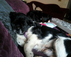 Er ist ein Sofafan, mag bislang eher kurze Spaziergänge und ist sehr gemütlich.