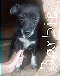 Hier ist Barbie zwar versorgt und hat ein Dach über dem Kopf, aber gleichzeitig auch reichlich unglücklich. Am liebsten versteckt sie sich momentan in ihrer Schlafhöhle im Zwinger, den sie mit 6-8 anderen Hunden teilt. Falls einmal jemand aus der Belegschaft ein bißchen Zeit erübrigen klann, lässt sich Barbie willig auf den Arm nehmen, es gibt null Gegenwehr, sondern erleichtertes Kuscheln.