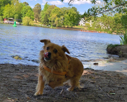 Jetzt üben wir Leine gehen, das dauert, aber die Kleine lernt schnell. Am einfachsten ist es natürlich in freiem Gelände, wo sie einfach so ohne Leine laufen darf, sie ist sehr süß und zeigt uns täglich ihre wieder gefundene Lebensfreude.