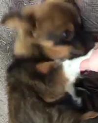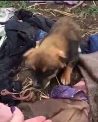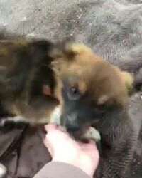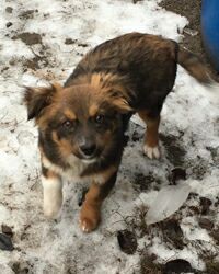 Dieses kleine junge Hundchen wurde zwischen den Jahren tatsächlich auf einer Müllhalde gefunden - sie hatte Glück, denn eine Tierschützerin machte dort gerade eine Art <Kontrollrundgang>. Diese rief uns an, meldete die Kleine, lockte sie mit Futter an (ach, sie war sooo hungrig) und nahm sie mit nach Hause. Das kleine Mäuslein schien erleichtert, dass sich nun jemand ihrer annahm, ließ sicher gerne auf dem Arm tragen, mit dem Auto heim bringen und kuschelte sich total übermüdet an ihre Retterin. Zuhause schlief sie sich erst einmal in Ruhe aus.