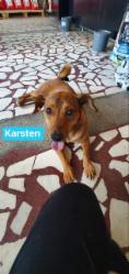 Karsten ist ein ausgesetzter kleiner Hund. Er landete unschuldig und unfreiwillig auf der Straße, war darauf überhaupt nicht vorbereitet und geriet so in große Not. Er ist eines jener Pechvögel, die, weil sie viel zu gutmütig und bescheiden sind, es in so einer Notsituation dann im realen Leben mit voller Härte trifft – er ist so brav und sehr freundlich und gesellig, das wird unter wild lebenden Hunden in rivalisierenden Lebenssituationen genauso ausgenutzt wie (im übertragenden Sinn) bei uns Menschen. Um es deutlich zu sagen: Karsten ist ein Mobbingopfer. Und als ob es nicht schon reicht, dass ihn seine Artgenossen wegjagen, wurde er auch noch von unfreundlichen Menschen permanent weggejagt, indem sie ihn mit Steinen beworfen haben. Natürlich ist er voller Angst geflüchtet.