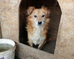 nun ziemlich unglücklich eingesperrt mit vielen anderen fremden Hunden