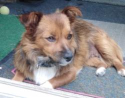 Dieses arme kleine Geschöpf wurde mutwillig ausgesetzt auf einem umzäunten Müllplatz. Man dachte sich wohl, dass sie da noch irgendwas zu fressen finden würde, aber sie konnte dort nicht aus eigener Kraft wieder herauskommen, war also gefangen im Müll. Da dieser schreckliche Ort jedoch bei Tierschützern bekannt ist, schauen regelmäßig Mitglieder dort nach ausgesetzten Hunden, und Dank deren Fürsorge konnte Cherry gerettet werden.
