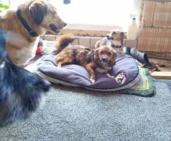 Cherry lebt nun seit einer Woche auf ihrer Pflegestelle mit drei anderen Hunden problemlos zusammen. Am Anfang war sie etwas schüchtern, auch ziemlich müde, bewegte sich kaum, aber inzwischen ist sie komplett angekommen und nimmt am regen Leben vor Ort gerne teil. Da eine der vorh. Hunde in ihrer Größe ist (eigentlich müsste man „Kleine“ sagen, denn sie ist wirklich winzig), hat sie auch jemanden zum Toben auf dem Grundstück. Mit diesem anderen Zwerg geht sie dann auch Gassi, das funktioniert schon recht gut.