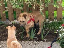 den anderen Hunden sehr verträglich, sie erkundet in aller Ruhe Haus und