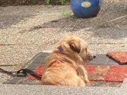 Garten, liegt gerne draußen in der Sonne und macht insgesamt einen zufriedenen