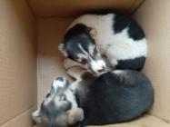 Die Geschwister Amir und Amira wurden von unserem Vorsitzenden am 04.12.2020 in einer leeren Lagerhalle entdeckt. Dort waren sie in einem mit Karnickelstalldraht abgeteilten Bereich ohne Futter, Wasser und ein zugfreies, warmes Lager in der ungeheizten Halle eingesperrt zurückgelassen worden. Sie saßen völlig verängstigt aneinander gekuschelt in einem Pappkarton zusammen. Natürlich wurden sie umgehend befreit und mitgenommen. Sie waren mittlerweile dehydriert, hungrig und durstig, sodass der erste Weg dann direkt zum Tierarzt führte.