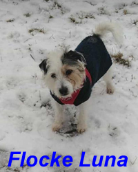 Unsere kleine Flocke Luna hat – wie leider etliche unter unseren vierbeinigen Freunden – ein besonders hartes Schicksal zu verkraften. Obwohl sie z.B. nie in einem Tierheim war, hatte sie es dennoch nicht einfach. Sie wurde als Welpe einer alten Dame zur Gesellschaft übergeben – ein großer Fehler, aber leider keine Seltenheit heutzutage. Und dann kam es so, wie meistens: Die kleine Terrier-Dame lernte nichts und war körperlich auch total unausgelastet. Und – da schlimmer immer geht – verstarb die alte Dame nach ein paar Jahren mit über 80, und Luna wurde an ihren Sohn weiter gereicht – ein weiterer Fehler. Der einzige Lichtblick in Lunas Leben war eine befreundete Nachbarin, die sie nach Kenntnis der Situation morgens abholte und mit auf tägliche Gassirunden nahm. So kam Luna wenigstens in den Genuss von ausgedehnten Streifzügen durch die Natur in Gesellschaft von Artgenossen, musste aber danach immer wieder zu ihrem Herrchen zurück, wo sie weder geliebt, noch erzogen wurde. Nachdem ihm im September klar gemacht werden konnte, dass diese freundliche Hündin endlich ein besseres Leben bekommen sollte, entschloss er sich nach einigem Hin und Her, uns Luna zu übergeben, damit wir für sie ein adäquates Zuhause suchen können, wo sie endlich das Hundeleben führen kann, das sie auch verdient hat.