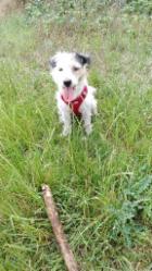 Jetzt suchen wir für Flöckchen Luna auf diesem Weg ein neues, endlich passendes Zuhause. Luna zeigt sich auf der Pflegestelle haustrainiert, leinenführig und verträglich mit den anderen Hunden und auch mit Menschen, allerdings muss sie auch noch viel lernen – das Thema <Erziehung> ist bisher etwas zu kurz gekommen, und von daher wäre es am besten, wenn Luna zu Terrierfans kommen könnte, die ihren Charakter erkennen und lieben. Sie ist willig und neugierig, und wenn Terrier auch ausgesprochen lebhaft und bewegungsfreudig sind, so ist sie doch insgesamt im mittleren Alter und von daher insgesamt etwas gelassener. Sie spielt gerne und ist am liebsten draußen in der Natur unterwegs, mit Artgenossen wäre es toll, aber sie bewegt sich gerne auch ohne. Dann muss ihr Mensch sie eben „bespaßen“, denn spielen und toben ist ihr momentaner Lebenszweck, und dafür braucht sie täglich viel Zeit bzw. hat offenbar auch einiges nachzuholen. Ballspiele haben wir mittlerweile deutlich reduziert, Suchspiele werden gerne angenommen.