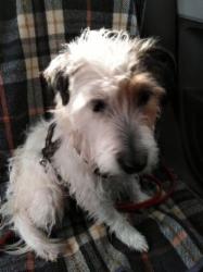 Die letzte Zeit war für sie nicht einfach, sie hat viele Veränderungen weg stecken müssen. Trotzdem hat sie ihr sonniges Gemüt nicht verloren, sie ist einfach ein gute Laune Schatz, der vielen Leuten ein Lächeln ins Gesicht zaubert. Hier in der Pflegefamilie arbeiten wir jetzt mit ihr. Flocke Luna ist ein Terrier par excellence, fröhlich und voller Energie, weshalb sie sich am besten für wirklich aktive Menschen eignet, die viel laufen oder Radfahren oder reiten etc. Bisher war ihre einzige und sehr geliebte Beschäftigung Bälle apportieren, das einzige, was sie von klein auf kennt, aber selten wünscht sich jemand einen Ball-Junkie in der Familie, und auch für Lunas Zähne ist das nicht förderlich.