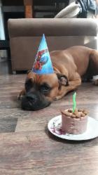 Seine „Ausrüstung“ bestand aus einem Würger-Stachelhalsband, welches als erstes sofort abgeschafft wurde. Testweise ging man mit Max an der Leine spazieren, das macht er ganz prima mit normaler Ausrüstung, wir empfehlen aber hier für die erste Zeit in jedem Fall ein 3-Punkt-Sicherheitsgeschirr, bis man sich gut kennen gelernt hat. Max ist ein wunderbarer Hund – Kumpel für Mensch und Hund, und in seiner Mimik kann man gut ablesen, wie er sich fühlt. Es soll hier jedoch nicht verschwiegen werden, dass so ein junger Boxer eine Art <Kraftprotz> ist und daher viel Auslauf und Beschäftigung braucht. Er ist noch nicht einmal zwei Jahre, da kommen noch einige Rüpelphasen auf seine Menschen zu, die bewältigt werden wollen.