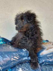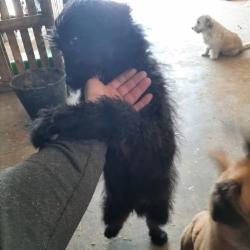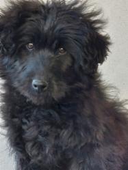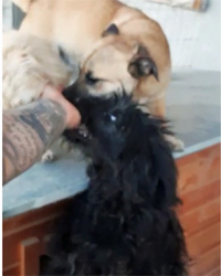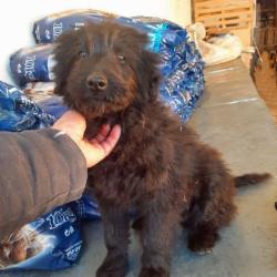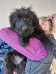 Puli wurde irgendwo auf einem Feld im „Nirgendwo“ herzlos von seinen Menschen einfach ausgesetzt, und damit noch nicht genug der Schande, er wurde vorher zusätzlich erschwerend in einen Plastiksack gesteckt, und der wurde dann obendrein auch noch ordentlich zugeschnürt. Der arme Hund geriet in Panik und konnte dabei die Folie seines Gefängnisses durchbeißen und sich am Ende selbst befreien. Danach war er so erschöpft und auch ratlos, dass er neben seinem Sack liegen blieb. Das arme Tier blieb zum Glück nicht unbemerkt – unser Tierheimleiter entdeckte das kleine schwarze Bündel inmitten der Vegetation, näherte sich ihm und gab ihm sein Frühstücksbrot – Puli war sooo hungrig, er schnappte sich alles, trug es weiter weg und fraß dann schnell alles auf. Weil nun schon ein gewisser Kontakt hergestellt war, konnte sich der Mensch dem kleinen Hund nähern, und irgendwie schien Puli auch froh, dass er jetzt die Verantwortung für sein Leben diesem freundlichen Menschen überlassen konnte. So zogen die zwei dann erst ins Auto, dann zum Tierarzt und nach dem Vet-Check ins Tierheim.Dort fand sich Puli vorübergehend vor einer Palette mit Trockenfutter „geparkt“ – na klar, er biss sich durch die Verpackung und fing an zu fressen. Er muss sich vorgekommen sein wie im Schlaraffenland.