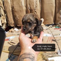 Die drei Welpen Emil, Eiko und Elroy sind vermutlich ein unerwünschter Wurf Hunde gewesen - geboren im August 2021 (ca. am 07-08-2021 oder auch etwa zwei Tage später), wurden sie im zarten Alter von nur wenigen Wochen zusammen in einer Obstkiste aus Plastik vor unserem Partnertierheim abgestellt und einfach herzlos ihrem Schicksal überlassen. Jemand befürchtete wohl die Kosten für die kleinen Hundchen für deren Ernährung, Aufzucht und tiermedizinische Versorgung. In den ersten Lebenswochen werden solche Hundekinder ja zunächst ausschließlich von der Hundemutter versorgt, aber dann geht es ja los mit den Kosten, wenn man verantwortungsvoll für seine Vierbeiner sorgt.