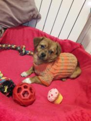 Ein paar Kinder der Schule wurden auf den kleinen Knopf aufmerksam, sie brachten ihm etwas zu essen und erzählten Zuhause von ihm. Er hatte Glück – er wurde von einer tierlieben Mutter mitgenommen und so gerettet. Da die Familie ihn aber leider nicht behalten durfte (Hundehaltungsverbot), wurde unser Partnertierheim gebeten, sich seiner anzunehmen.