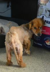 Unsere Tierschutzbeauftragte hörte dann endlich von seinem traurigen Schicksal, setzte sich sofort ins Auto und fuhr weit über 100 km zu der Stelle, an der er lag, nahm ihn mit ins Auto und nach Hause. Hier wird er seit Wochen aufgepäppelt, medizinisch versorgt und mußte natürlich komplett geschoren werden.