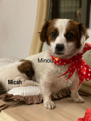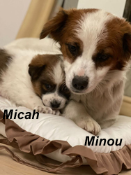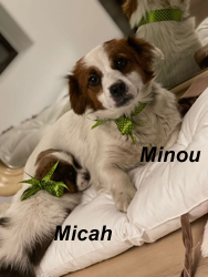 Mama Minou wurde samt ihrem Welpen Micah in der Nähe der Tierauffangstation gefunden und war mit hineingenommen worden, denn allein hätten die zwei da draußen in dieser kalten Jahreszeit nicht überlebt. Leider wußte niemand etwas zu den beiden Hundchen zu berichten, und auch Suchmeldungen brachten keinen Erfolg.