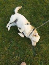 Mogli ist seit Anfang März auf einer Pflegestelle in Brandenburg. Dort zeigt er sich inzwischen als liebenswerter, freundlicher Hausgenosse, der stets kompromissbereit ist und nachgibt, wenn die anderen Hunde in der Pflegestelle ihm eine Ansage machen. Alles geht problemlos, nur in einem Punkt versteht Mogli derzeit keinen Spaß: Das ist sein Futter. Er musste offenbar in seinem bisherigen Leben gehungert haben, er fraß anfangs gierig und verteidigte seinen Napf. Inzwischen begreift er nach und nach, dass er jeden Tag genug zu fressen bekommt und nie mehr hungern muss, wir arbeiten daran, und den Rest bringt die Zeit.