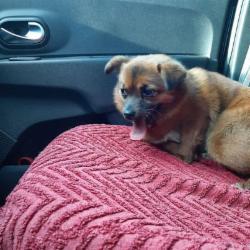Unser Tierheimleiter war gerade auf dem Weg zur Arbeit, als er die kleine Muriel dort um ihr Leben rennen sah. Er hielt an, lockte sie zu sich und nahm sie als erste Notfallmaßnahme in sein Auto. Sie ließ es nur zu gerne geschehen; sie machte sogar einen irgendwie erleichterten Eindruck, dass nun jemand die Verantwortung für sie übernahm, der freundlich zu ihr sprach, sie abtrocknete, ihr etwas zu essen gab und sie streichelte – und das alles in einem beheizten und warmen Raum (Auto). Dann wurde die kleine Motte glich auch noch dem Tierarzt vorgestellt, sie erhielt Chip und Impfungen, ließ das ganze Procedere brav über sich ergehen und wurde dann zum Tierheim gefahren.