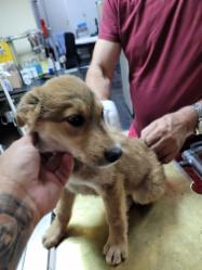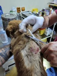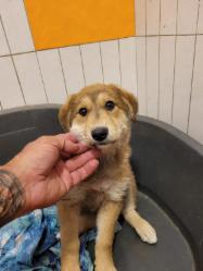 Die kleine Luna wurde im Juli 2022 mutterseelenallein irgendwo im Nirgendwo gefunden – der Chef von unserem Partnertierheim war wieder einmal zur richtigen Zeit am richtigen Ort um sie zu retten. Dieses arme kleine Welpchen war über und über verdreckt, verklebt und hatte diverse Hautirritationen, also ging es auf direktem Weg mit dem Auto zum Tierarzt. Dort wurde die Kleine examiniert, teilgeschoren und behandelt – es ging ihr nicht besonders gut, aber mit den richtigen Medikamenten und viel Luft und Sonne an der Haut hat sie sich mittlerweile gut erholt. Dank der guten Versorgung kann sie nun endlich ein gesünderes Leben führen und das tun, was alle Welpen tun – fressen, trinken, verdauen, spielen, schlafen, und dann alles wieder von vorn. Seitdem sie regelmäßig gefüttert wird, hat sie auch angefangen zu wachsen – ihre Endhöhe ist vermutlich mittelgroß bis groß, aber wir wissen es nicht.