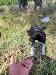 Die kleine Anouk wurde gerade erst die Tage gefunden, als unser Tierheimleiter auf dem Weg zu seiner Baustelle (das wird das neue Tierheim) war, um den Baufortschritt zu kontrollieren und, wie so oft, auch noch selbst mit Hand anzulegen. Da lag sie ganz in der Nähe an einen Maschendrahtzaun gedrückt und wußte nicht mehr weiter. Weil unser Chef eine Art „Hundeflüsterer“ ist, war schnell ein Kontakt hergestellt, die Kleine wurde mit Futter angelockt und nach einer Stärkung dann ins Auto gesetzt – an arbeiten war nicht mehr zu denken. Stattdessen ging es zum Tierarzt, wo Anouk durchgecheckt, gechipt und geimpft wurde. Sie war brav und hat die ganze Prozedur über sich ergehen lassen. Wir vermuten zwar, dass sie einst möglicherweise bei Zigeunern gelebt haben muss, denn sie hat die übliche „gegen Staupe“ Brandmarke auf der Nase, kann sich aber jedoch auf der Flucht vor wem oder was auch immer natürlich irgendwo geratscht haben – allerdings ist die Markierung schon alt, und die Prozedur ist leider immer noch üblich. Ihrer Schönheit tut das keinen Abbruch, und sie punktet vielmehr mit einem sehr freundlichen Wesen, ist verkuschelt und sehr schmusebedürftig. Sie hat also einiges nachzuholen, und das gilt nicht nur für das Essen..
