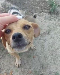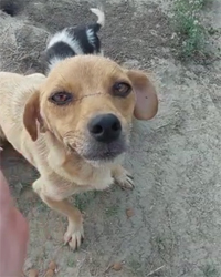Diese liebenswerte kleine junge Hundemama wurde mitsamt ihren zwei kleinen weiblichen Welpen irgendwo in der Wallachei ausgesetzt und dort herzlos ohne Futter oder Wasser hinterlassen. Sie mußten es dort schon eine Weile ausgehalten haben, denn alle drei waren über und über mit Zecken besetzt. Zu ihrem Glück kam unser Tierheimleiter auf dem Weg zu dem Neubau unseres Partnertierheimes vorbei, um den Baufortschritt zu kontrollieren und hier und da noch zusätzlich selbst Hand anzulegen. Er erkannte sofort ihre Not, versorgte zunächst die tapfere kleine Hundemama mit Futter und Wasser (die Welpen saugten noch), verbrachte alle drei in sein Auto und gab ihnen zunächst eine Ruhepause im Quarantäneraum des alten Tierheims.