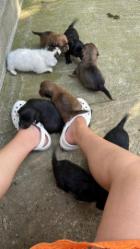 Marita lebt bereits etwa vier Wochen in unserem Partnertierheim, nachdem sie ausgesetzt worden war und streunernd auf einem Feld abseits der Straße aufgegriffen und der Leitung vor Ort übergeben wurde. Die ersten Untersuchungen beim zuständigen Veterinär zeigten, dass Marita tragend war und die Geburt nicht mehr allzu fern. Daraufhin wurde sie privat untergebracht, um ihr vor und nach der Geburt mehr Ruhe zu gönnen. Die kleine Maus hat es sehr spannend gemacht und acht kleinen Welpen das Leben geschenkt – was für eine Leistung für so einen kleinen Hund!