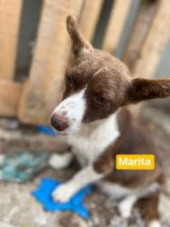 Mama Marita erholt sich nun auch von den Strapazen der Trächtigkeit. Sie ist eine sehr stolze und fürsorgliche Mama, die aber eigentlich mit ihren noch nicht einmal zwei Jahren doch viel zu jung ist für so einen großen Wurf von acht Welpen. Vermutlich hatte sie bisher kein schönes Zuhause, niemanden, der sie umsorgte und die Verantwortung für sie trag. Das wollen wir ab sofort ändern. Marita ist so eine hübsche kleine Hündin mit einem guten Charakter. Sie ist einmalig gezeichnet und damit ein unverwechselbares Unikat, hat ein pflegeleichtes Fell und eine sehr handliche Größe, da sollte es hier doch wohl gelingen, das richtige Zuhause für sie zu finden. Die Kleine kann überall glücklich sein, Hauptsache, sie darf endlich ankommen und dann für immer bleiben.