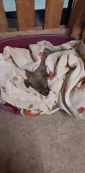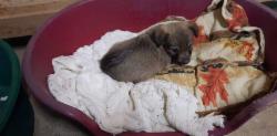 Dieser kleine Racker wurde von dem Bruder einer uns bekannten Tierschützerin auf der Straße gefunden. Er kam dort auf dem Weg zur Arbeit mit dem Auto vorbei, dachte anfangs, das Häufchen auf der Straße wäre ein Igel, denn Igel reagieren auf eine sich nähernde Gefahr nicht durch Flucht, sondern indem sie den Kopf gegen den Boden senken und die Stacheln über den Kopf nach vorne ziehen. Der junge Mann hielt sein Auto quasi vor dem „Igel“ an, schaltete die Warnblinkanlage ein, hielt den gesamten Autoverkehr auf und holte das kleine Tier von der Straße und somit aus der Lebensgefahr. Wie groß war sein Erstaunen, als er merkte, dass es sich um einen kleinen Hund handelte. Es war ein etwa 8 Wochen junges kleines Hundemädchen, und er brachte es umgehend zu seiner Schwester, die eine kleine Auffangstationen für Katzen führt. Da sich dort auch immer zwei bis vier kleine Hunde aufhalten dürfen, hat die kleine Lucky dort alles, was sie braucht: Futter, Wasser, tiermedizinische Versorgung, Gesellschaft von Artgenossen, lernt die Katzen genau kennen und darf sich zunächst erst einmal gründlich ausruhen.
