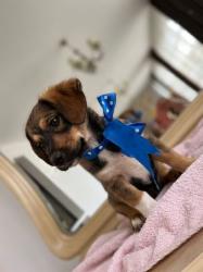 Er ist so niedlich, einzigartig mit ihren 3 Fellfarben und ihren make up Augenbrauen. Ein Dackelblick trifft auf Spaniel-Aussehen mit einer idealen prognostizierten Mittelgröße und wunderbarem weichen Fell. Er ist absolut offen für alles Neue, bestimmt ist vieles noch unbekannt, er möchte das aber erlernen und mit seinem Menschenrudel an deren normalem Alltag teilnehmen.