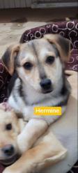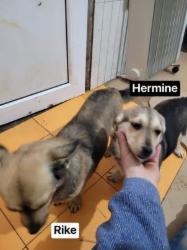 Die kleinen blonden Dackel Mix Mädchen sind schwer voneinander zu unterscheiden, HILLA hat das längste Welpenfell, HERMINE das dunkelste Gesichtchen mit der Zeichnung wie ihre Mama und auch eine schwarze Decke, und HELENE und HENRIKE wirken wie eineiige Zwillinge. THEA, die zarte Schwarze, trägt ihr Haar gerne offen und hat sich - wie unglaublich schlau - diesem kleinen Rudel in ihrem Überlebenskampf angeschlossen.