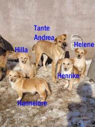 Aber ist es nicht nur unfassbar, wütend und traurig machend oder zum Verzweifeln für uns Tierschützer, wie diese so jungen Hunde schon um ihr ( Über-) Leben kämpfen müssen. Wir wissen nicht einmal, ob sie jemals ein Zuhause hatten und entsorgt wurden, weil sie lästig oder mehr … wurden. Oder schlug sich schon ihre ebenso junge u. kleine Mama RIKE immer alleine auf den Straßen durch und musste nun sogar ihre kleine Familie durchbringen, durch Kälte, Hunger und ständige Gefahren? Wir wissen es nicht, finden aber dieses gemischte Sixpack unheimlich süß und mutig. Sie alle verdienen nun bitte ganz schnell Hilfe, Aufmerksamkeit und erst recht ihre eigene Menschenfamilie, nachdem sie mit viel Glück in einem Tierheim untergebracht werden konnten.Alle 6 Hunde sind weiblich- furchtbar, denn in freier Natur wären auch die Welpen in etwa 7 Monaten sicher wieder selbst tragend und vergrößern dann auch wieder ungewollt die Zahl der freilaufenden Hunde.