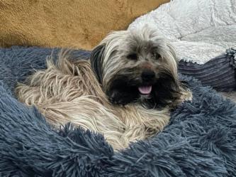 Tinchen ist neugierig und aufgeschlossen, brav und umgänglich. Sie hat bereits einen Bürsten-Marathon geduldig ertragen, und wir konnten ihr viele kleine und große Filzplatten ohne jede Gegenwehr entfernen. Sie geht bei jeder sich bietenden Gelegenheit auch gerne in den Garten und löst sich dort. Sie ist so eine angenehme Mitbewohnerin, man kann sie von morgens bis abends loben, sie läuft unauffällig einfach mit, kam auch bereits am ersten Tag ihres Einzugs von allein die Treppe hoch und war damit schon bei uns in den oberen Räumen. Dort hat sie heimlich und ganz leise in Herrchens Bett geschlafen. Wir päppeln sie jetzt erst einmal auf, sie ist wirklich zu dünn, aber das ist nicht ihre Schuld, und es wird in Kürze ja auch wieder anders sein. Über diese liebe kleine Sonne, die immer guter Laune ist, können wir absolut nichts Negatives sagen, höchstens, dass für sie noch ein Bad und ggf. auch ein Friseurbesuch ausstehen.