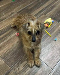 Diese kleine Maus wurde Ende März ausgesetzt – und zwar in unmittelbarer Nähe von unserem Partnertierheim, da wurde sie in der Nacht heimlich in einem zugebundenen Karton vor die Tür gestellt und zurückgelassen. Aber wir wollen hier nicht den Stab brechen über diesen Menschen – sie war sehr dünn, vielleicht hatte er keine ordentliche Unterkunft für sich und/oder für sie und setzte sie zumindest nicht irgendwo im Wald aus. Der erste Mitarbeiter fand sie in der Früh, nahm sie mit nach drinnen und versorgte sie mit Futter und Wasser. Da sie ziemlich erschöpft wirkte, bekam sie ein weiches Körbchen und Ruhe. Nach ein paar Stunden Schlaf wurde sie dem Tierarzt vorgestellt und bekam dort ihre Impfungen und einen Chip. Der Vat-Check war mit Bravour bestanden, und so durfte sie dann in eine kleine Gruppe von passenden Hundchen umziehen. Hier lief alles sehr friedlich ab, und Bisquit hatte keinerlei Eingewöhnungsprobleme. Sie ist jung, sie braucht ein paar Muskeln und etwas Kondition, dann darf sie auch zu den anderen Hunden und an der wöchentlichen Spielstunde teilnehmen.