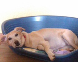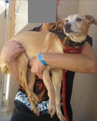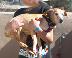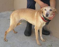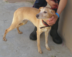 Bessie wurde im Jahre 2013 ausgesetzt und hielt sich neben einem Sicherheitsdienst auf, wo die Sicherheitsleute sie mit einem Besen und dergl. traktierten, um sie fort zu jagen bzw. sie wie ein lästiges Insekt zu erschlagen. Dabei hatte diese arme Hündin doch nur die Gesellschaft von Menschen gesucht, weil sie so großen Hunger hatte. Das brutale Vorgehen wurde glücklicherweise der Tierrettung gemeldet, und nach einigen Fehlversuchen gelang es den Tierschützern sie einzufangen.