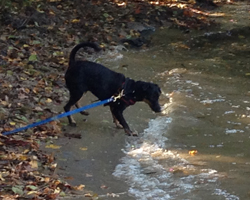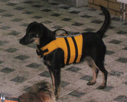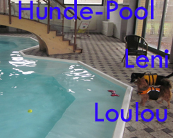 Sie ist wasserliebend und geht gerne schwimmen, deshalb waren wir mit ihr jetzt auch schon in einem Hunde-Hallenbad vom Pfötchenhotel schwimmen.