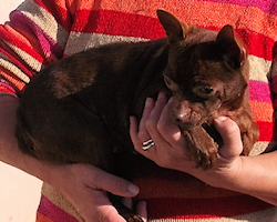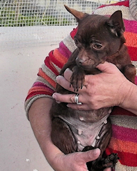 Diese kleine Chi-Dame ist arm dran, ähnlich wie die anderen Chihuahuas dort auf der Pflegestelle. Erst wurde sie als Gebärmaschine mißbraucht, dann wurde sie ausgesetzt - sie hatte ihre Schuldigkeit getan und war "wertlos" geworden.