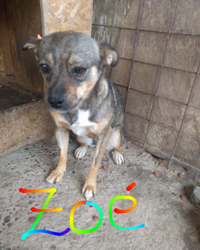 Irgendwann später wurde die arme Zoé wurde von den Tierfängern aufgesammelt und in eine Tierklinik gebracht. Dort wurde ihr geholfen, so gut es unter den Bedingungen vor Ort möglich war. Danach wurde sie einem großen Tierheim übergeben, wo sie bis heute ist. Ab und zu humpelt sie vorne rechts ein bißchen - leider gibt es dort keine Physiotherapie und auch keine gleichmäßige Bewegung, um die Muskulatur zu kräftigen. Aber Schmerzen hat sie, wie ihre Pflegrin uns sagte, glücklicherweise keine.
