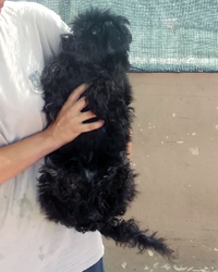 Weil Blackie "nur aus Haut/Fell und Knochen" besteht, konnte er bisher noch nicht geschoren werden - neue Frisur ist in Planung.