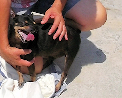 Francesco hat inzwischen einen Pflegeplatz im Raum FfM ergattert. Dort geht er völlig ungeniert zwischen den anderen Hunden im Haus und im Garten herum. Durch die viele Bewegung auf den gemeinsamen Hunderunden hat er schon deutlich abgespeckt und kann mittlerweile auch besser mit den anderen Vierbeinern mithalten. Er wird inzwischen WILLY gerufen, und darauf hört er auch prima. Wenn sein Frauchen ruft, aufsteht oder für ihn nicht sichtbar ist, kommt der kleine Willy angeschossen und sucht sie - drinnen wie draußen. Und wenn er sie gefunden hat, dann freut sich der kleine Fratz richtig doll, und dann wackelt der ganze kleine Körper mit.