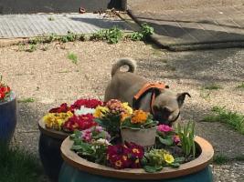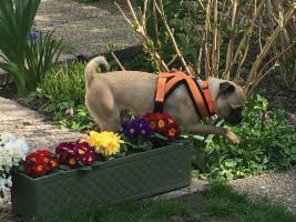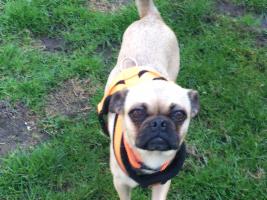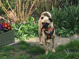 Es ist zu merken, dass Perla bisher noch nicht viel erlebt hat, deswegen ist sie noch recht unbelastet und offen für alles, Hauptsache, es ist immer etwas los. Sie ist eben ein <Sportmops>.