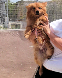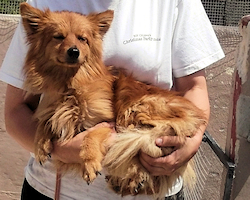 Foxy ist ein unkomplizierter Begleiter, lebhaft, hat überhaupt keinen Jagdtrieb und freut sich über Ansprache jeweder Art. Zur Fellpflege braucht man allerdings Geduld und Zeit sowie eine gewisse Hartnäckigkeit - inzwischen sind die schlimmsten Verfilzungen Geschichte, und der kleine Spitz lässt sich halbwegs brav bürsten.